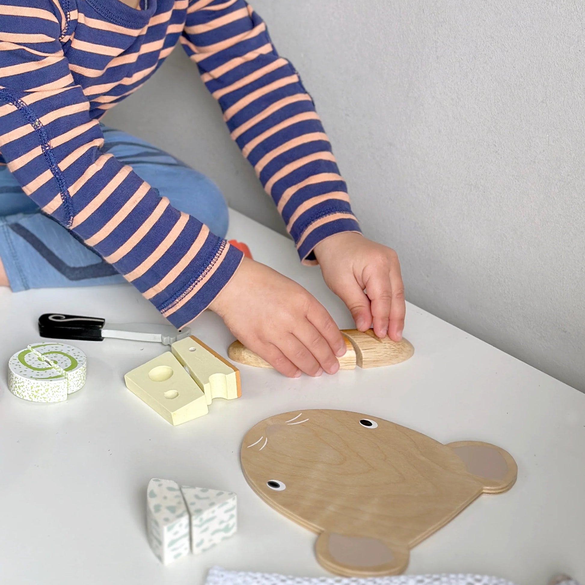 This cheese board set supports essential cognitive development, improving fine motor skills, and creativity with little ones. teaching them in a fun and interactive manner about real life scenarios and social interactions.