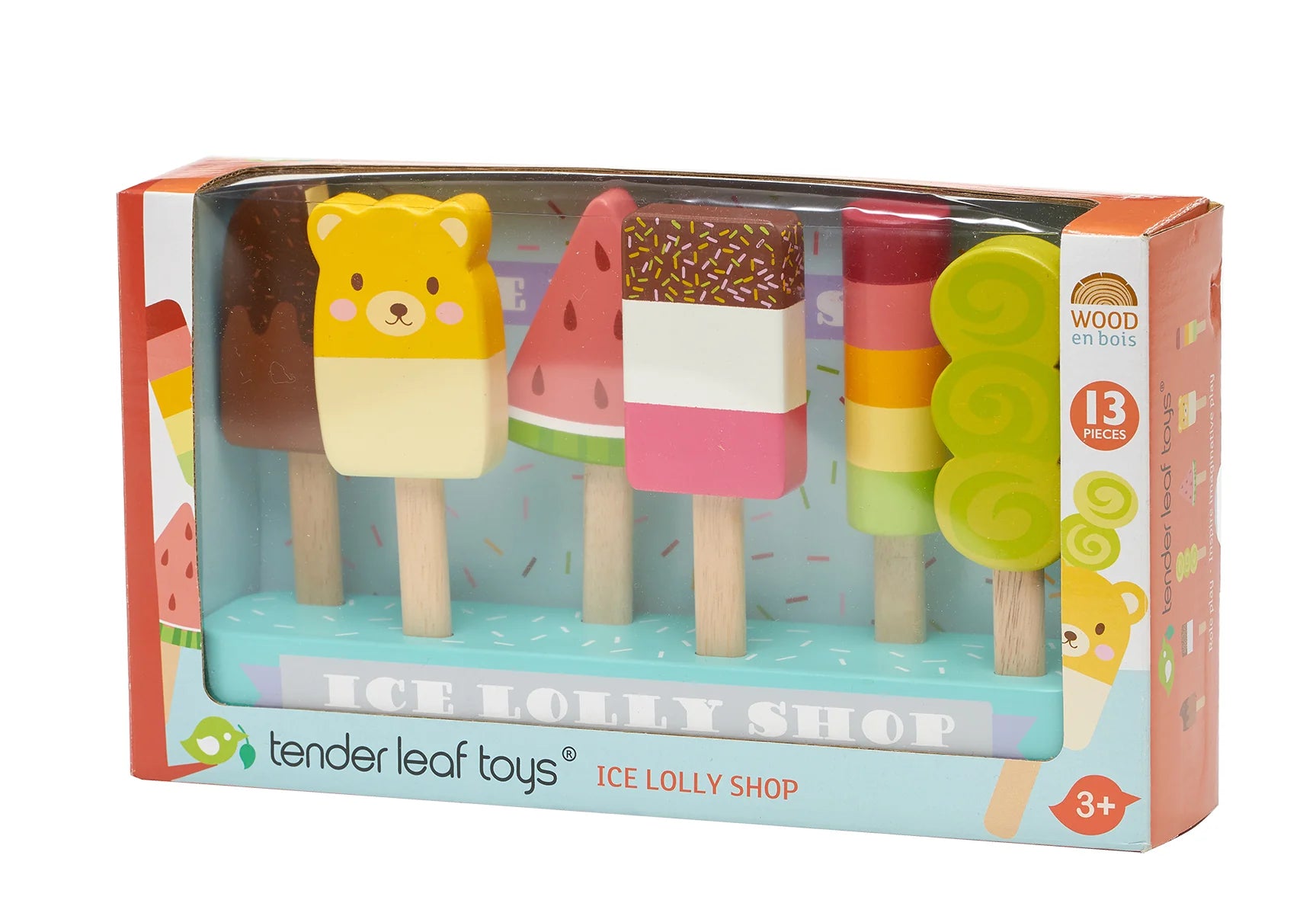 6 delicious lollies painted in yummy colours, made from solid wood and all with removable sticks!