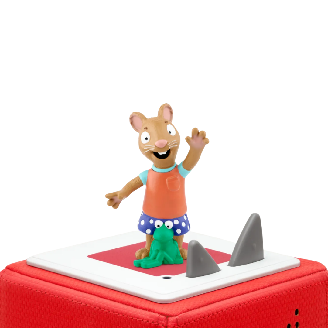 Simply place a Tonie on top of the Toniebox to start listening. Tap the sides to skip tracks, rewind, or fast-forward through stories, and adjust the volume by gently squeezing the ears.
